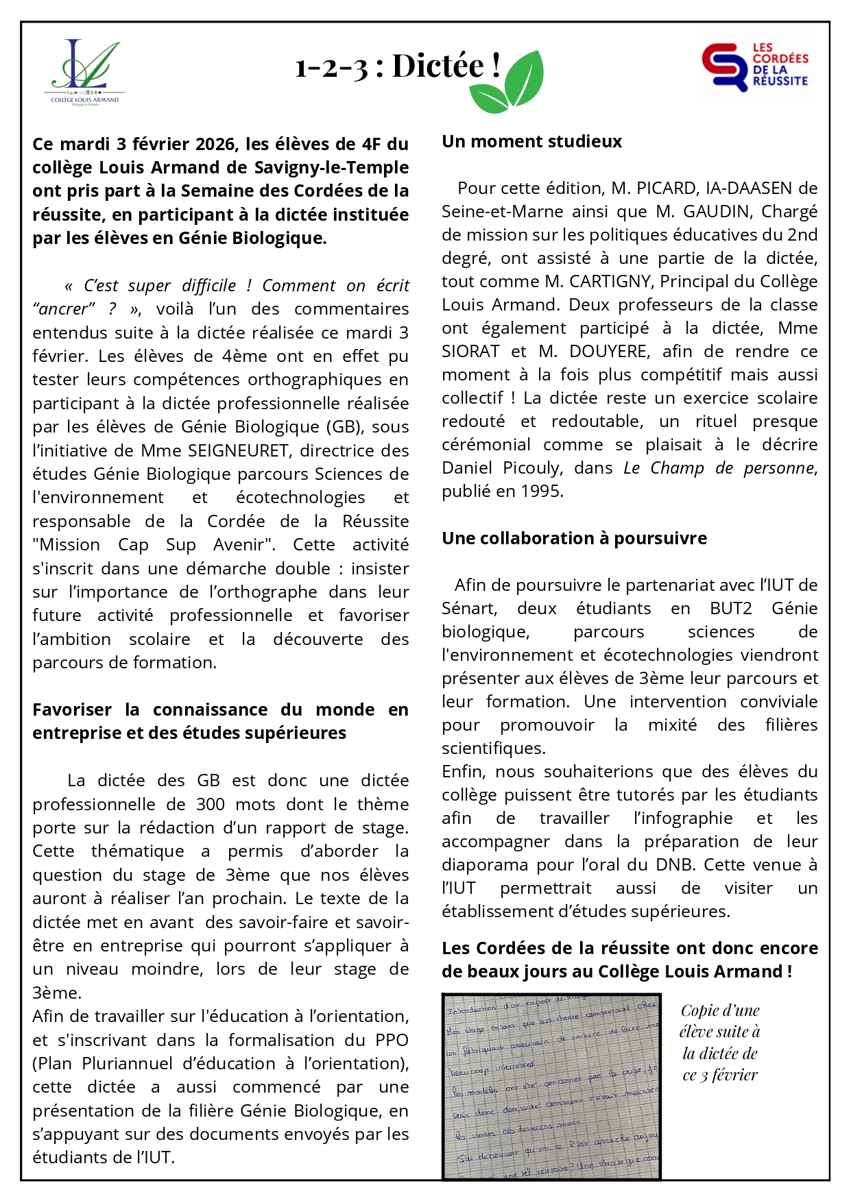 1/ Le service infirmier au Collège Louis Armand Le Collège Louis Armand dispose d'un service…