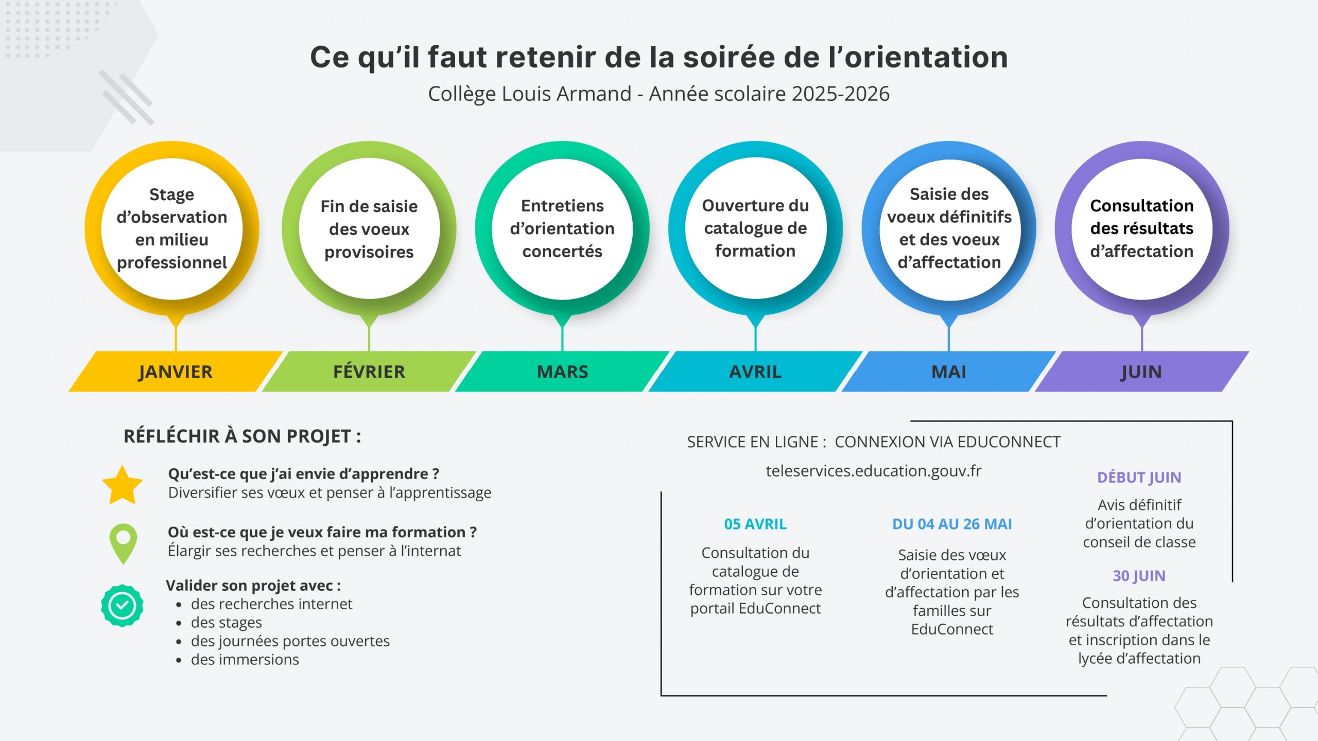 Pour rappel : Les vœux d’affectation doivent être saisi avant lundi 27 mai 2024. Pour vous aider à faire le point sur votre projet professionnel et à trouver l’orientation qui vous intéresse, le CDI accueillera les élèves de 3ème en priorité tous les jeudis et vendredis de 13h15 à 14h, ainsi que les familles, sur rendez-vous.