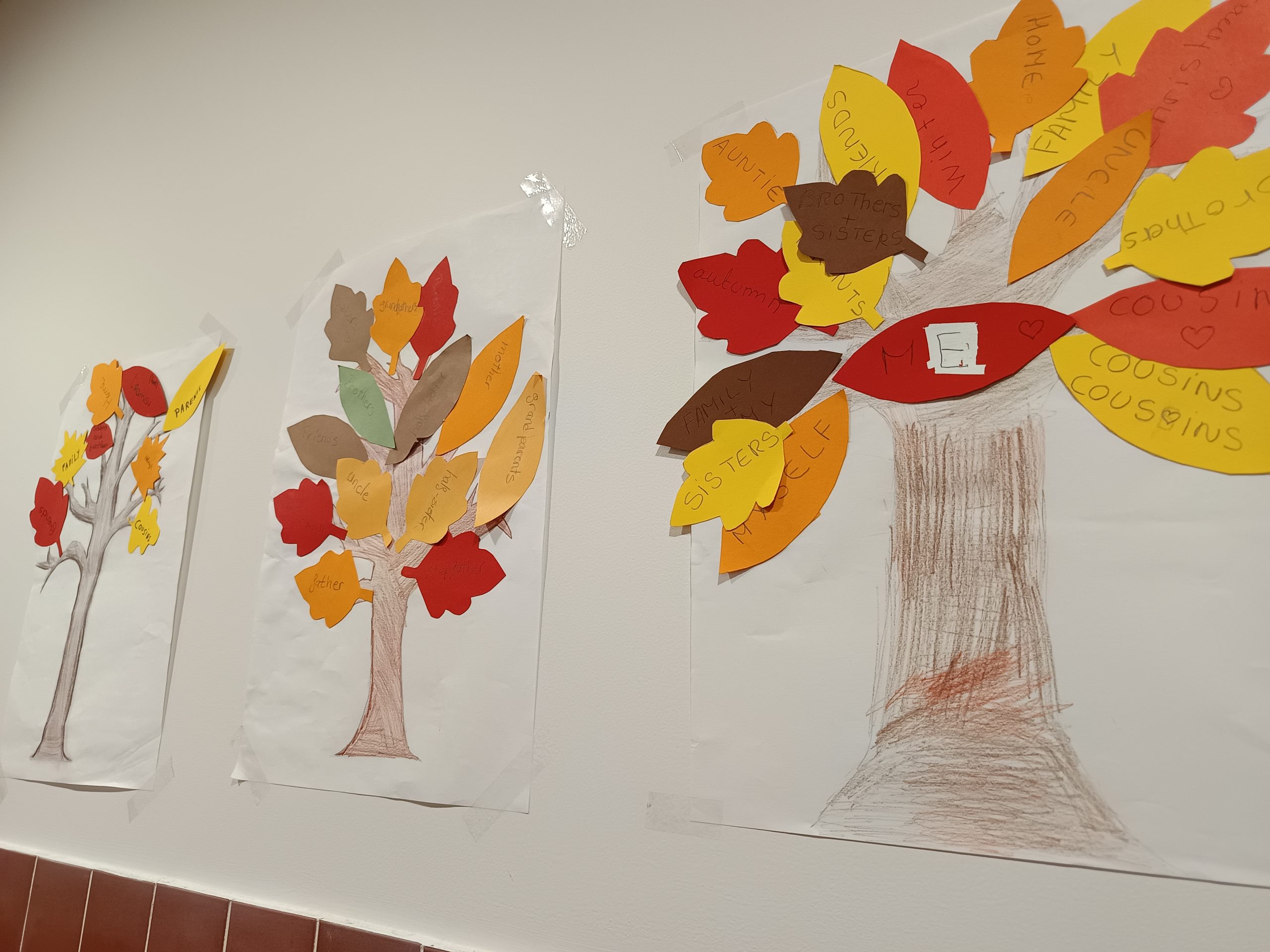 Les semaines suivantes, les élèves ont pu réaliser des « Thankful trees » individuels ou collaboratifs consistant à illustrer un arbre et ses feuilles sur lesquels nous indiquons les choses pour lesquelles nous sommes reconnaissants dans la vie.